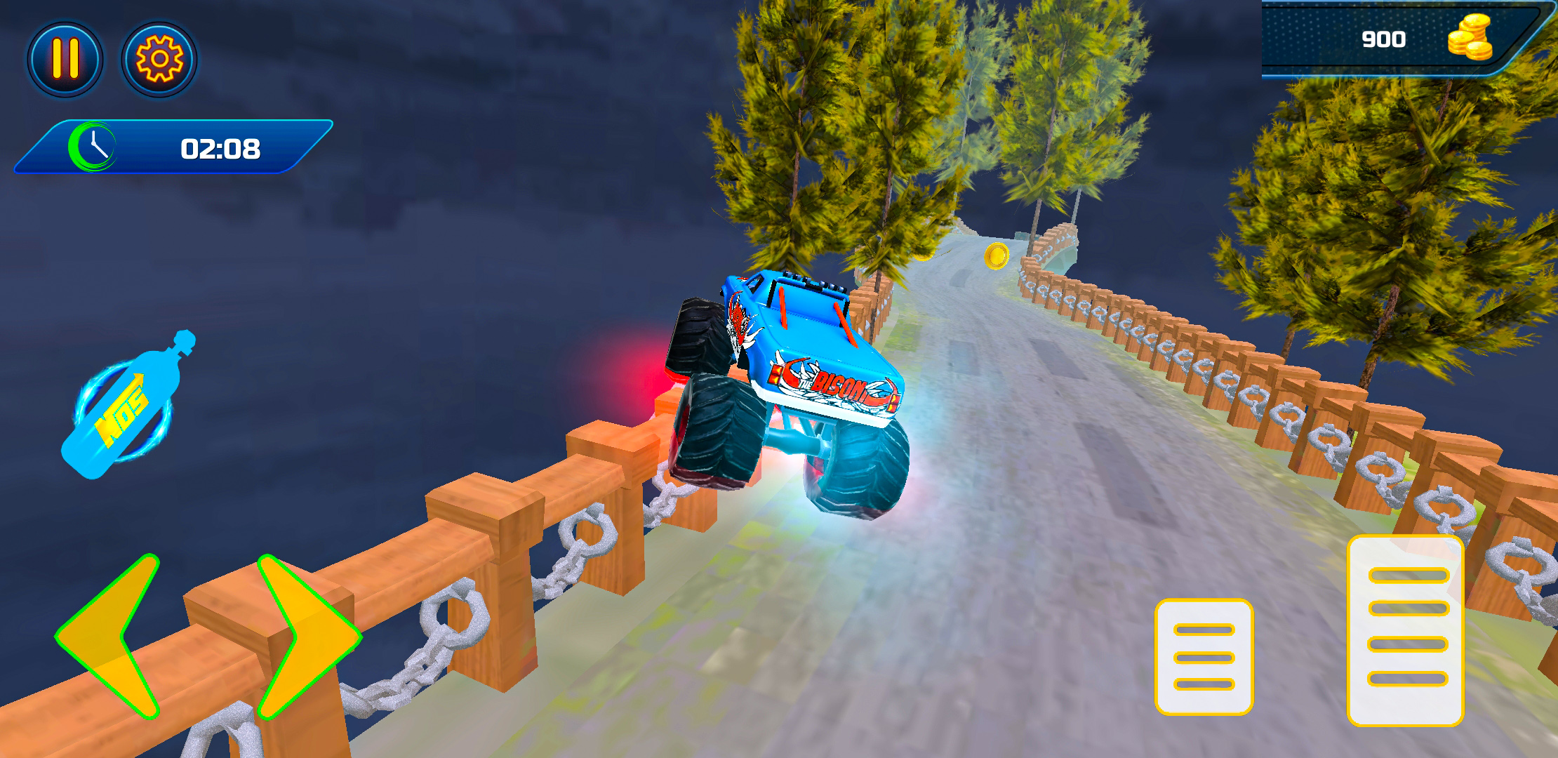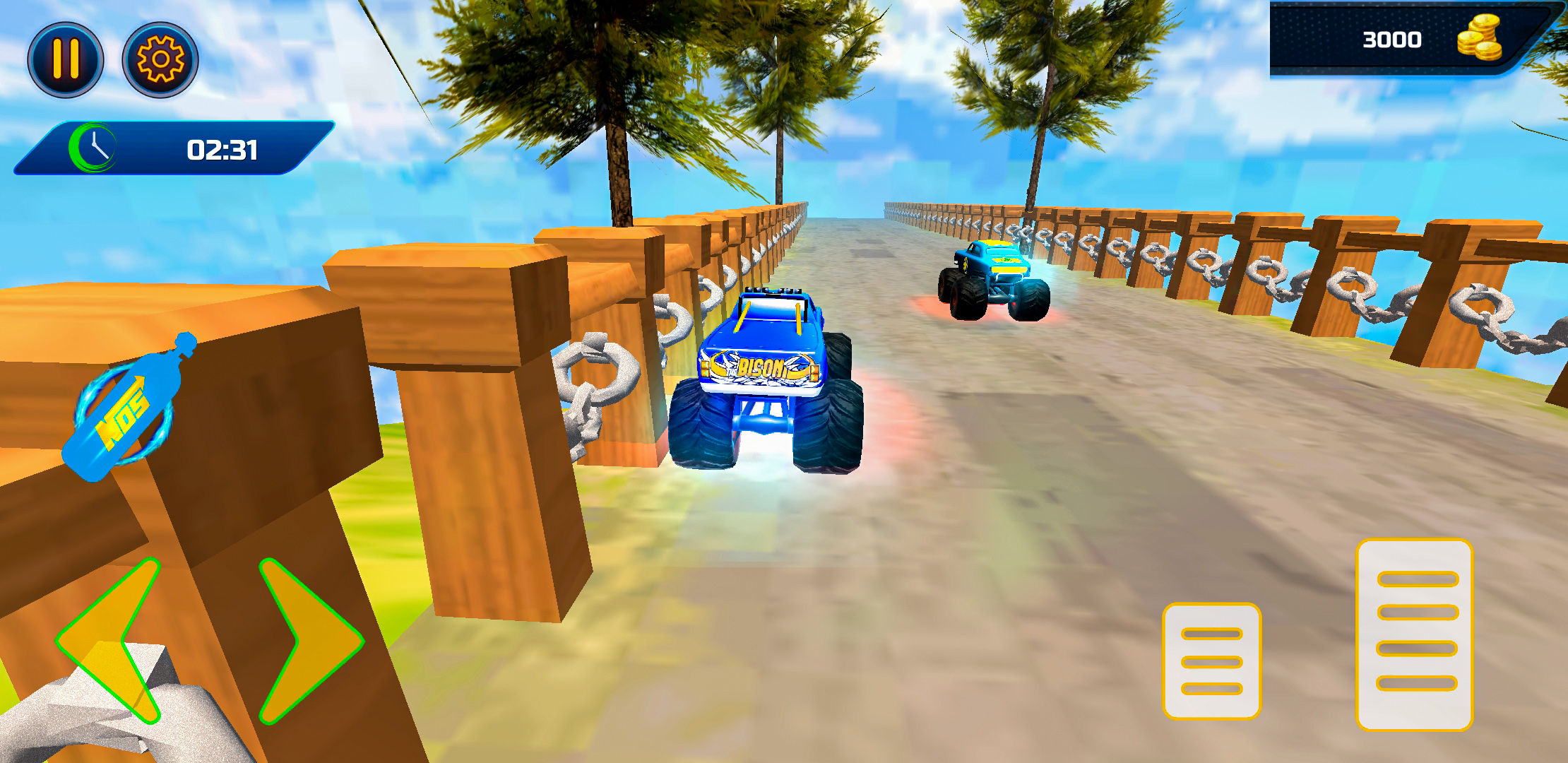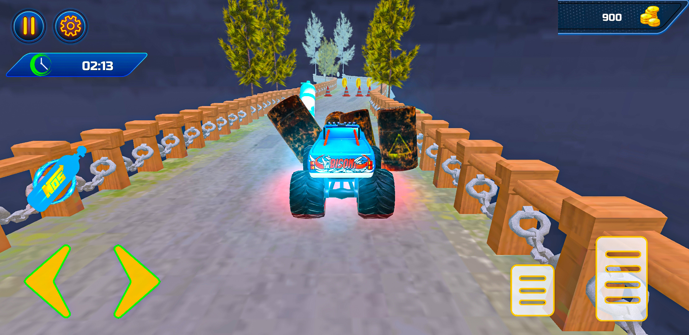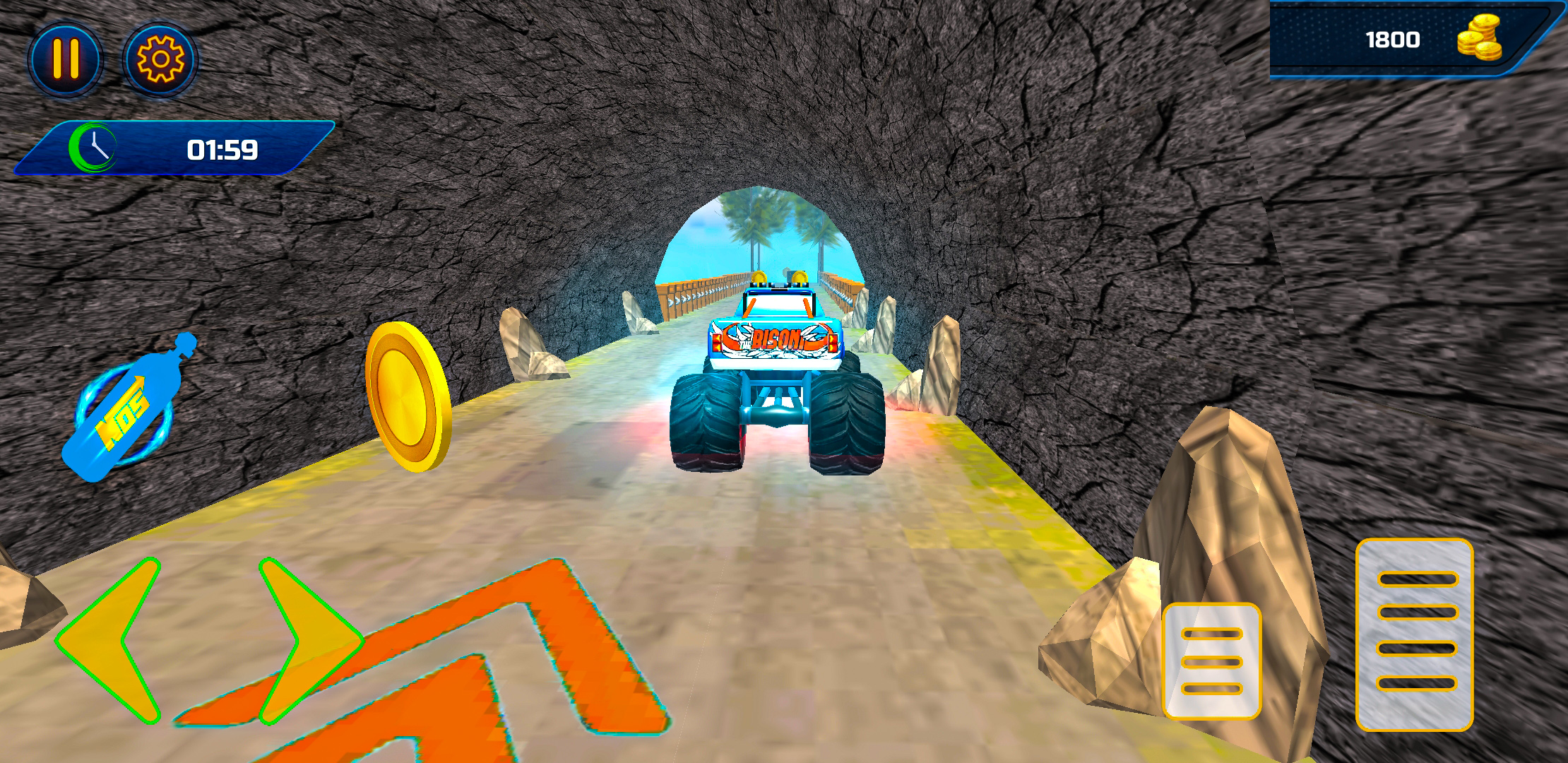 Welcome to the mountain stunts racing car game with a ramp for impossible monster truck stunts.